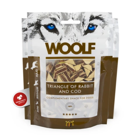 Prírodné maškrty Woolf z králičieho mäsa a tresky pre psa každého plemena i veku. 100% prírodný, výrazná chuť, lákavá vôňa. Maškrty Woolf sú raz varené a balené bez akýchkoľvek chemických prísad. Skrátka maškrta, ako má byť.