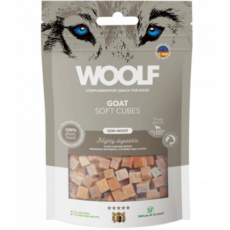 Voňavé mäkké kocky Woolf z čerstvého kozieho mäsa, vhodné pre psy a mačky všetkých druhov. Polomäkké kocky sú veľmi chutné, vysoko stráviteľné a neobsahujú obilniny. Vynikajúca odmena, ktorá poteší neskrotného mladíka aj rozvážneho starčeka.