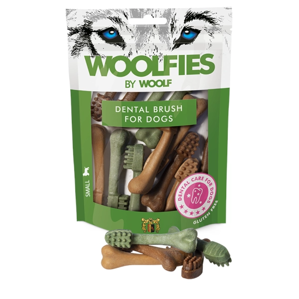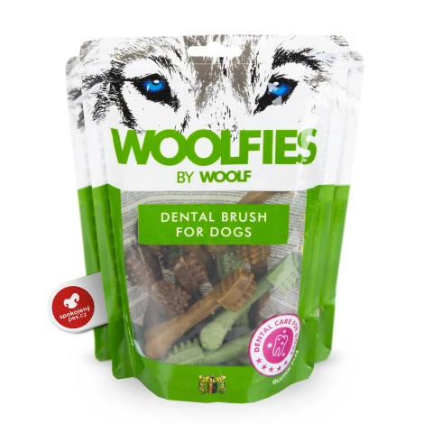 Žuvacie dentálne maškrtu Woolfies s úžasnou mäsovou vôňou. Zloženie je úplne vegetariánske, vhodné teda aj pre psov s alergiou na mäso. Tvrdá konzistencia, ktorá sa netriešti. Podporuje žuvanie, čistí zuby a zamedzuje zápachu z papulky. Zdravá dobrota, ktorú si váš pes obľúbi.