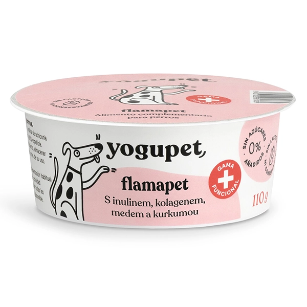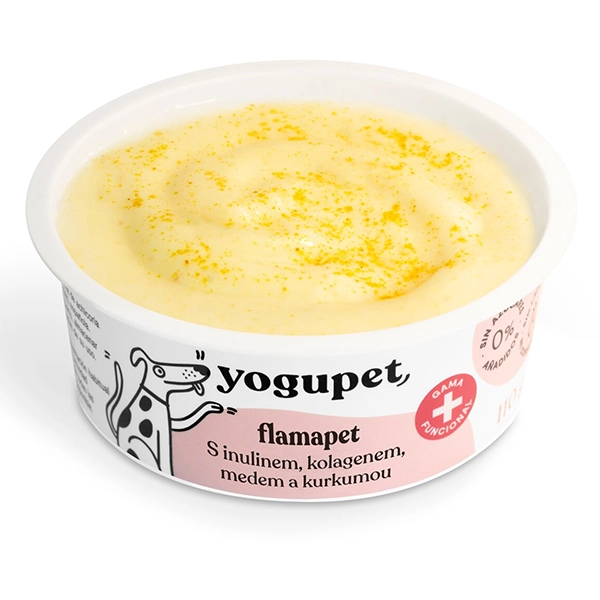 Obohaťte stravu svojho psa o skvelý snack Yogupet Flamapet. Tento jogurt pre psov vyrobený z pasterizovaného mlieka s kurkumou, medom, bravčovým kolagénom a čakankovým inulínom je zdravá a prírodná pochúťka, vďaka ktorej vás bude váš pes ešte viac milovať. Jogurt podporí zdravie črevnej flóry a prinesie extra dávku zdravotných benefitov. Vďaka obsahu kurkumy má táto pochúťka aj protizápalové a antioxidačné vlastnosti.